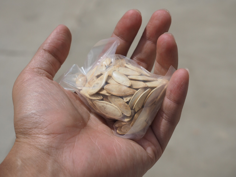 おばちゃんがカバンから小さなかぼちゃの種の包みを出して僕にくれた。