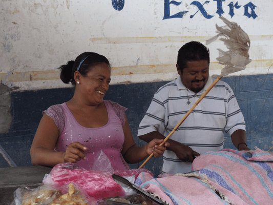 ただ木陰で寝ているような人もいる。けど私はひとつ5ペソのこのかぼちゃのタネを売っているの。」